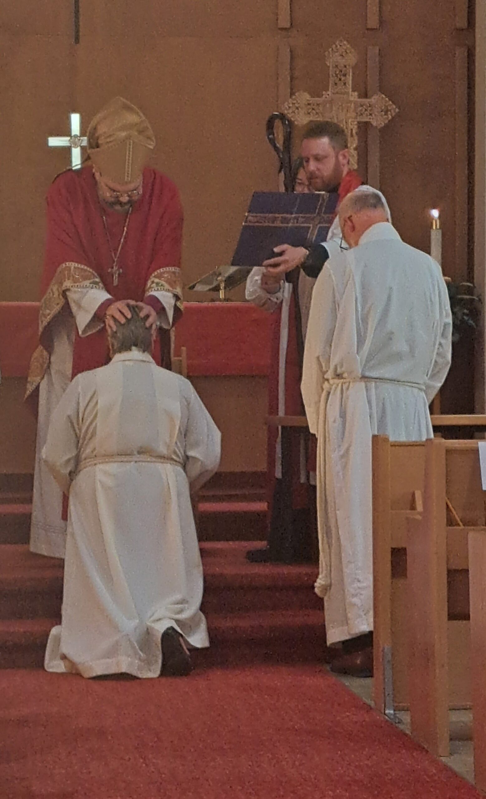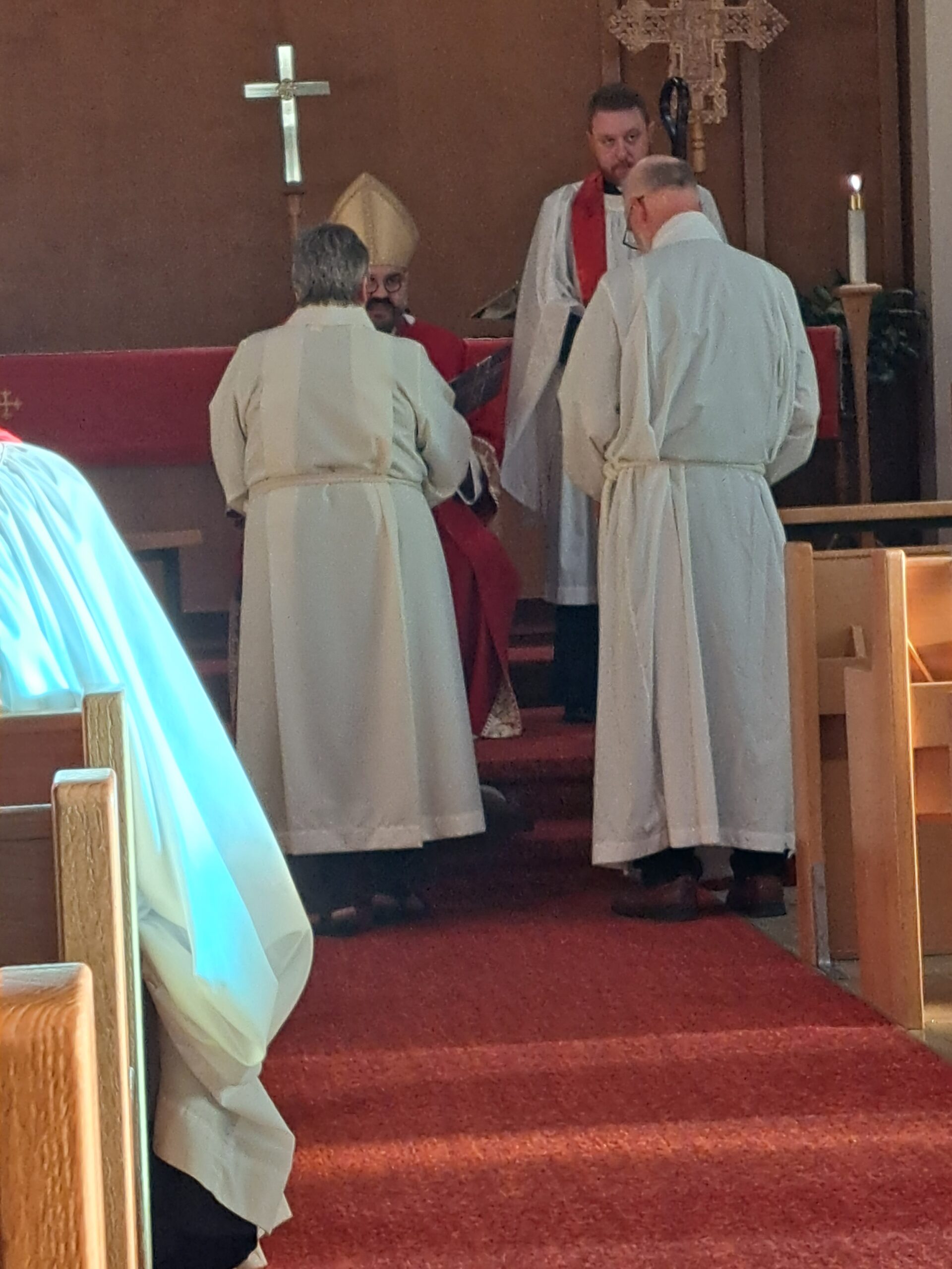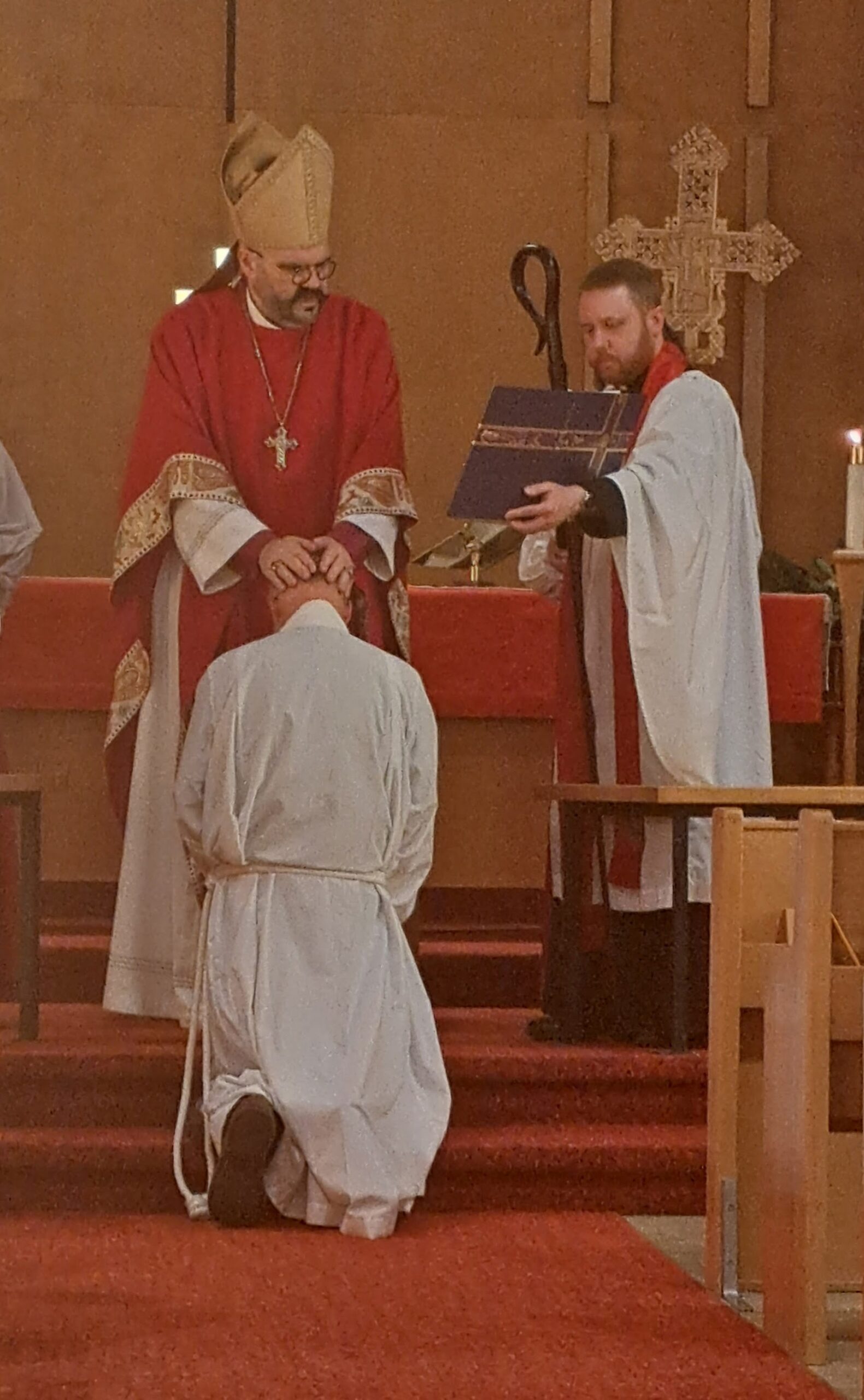 On August 29, we gathered at Redeemer Lutheran church to ordain two deacons and one new priest in Christ’s Holy Catholic Church. A hearty congratulations go out to the Reverend Debra Chapman, now Deacon Assistant at St. Paul’s, Wawanesa, to the Reverend Tim Moore, now Deacon Assistant at St. Paul’s, MacGregor, and the Reverend Cheryl Kukurudz, who continues her work as assistant to the Bishop and Dean, but takes on the role of Honorary Assistant at St. George’s, Brandon.