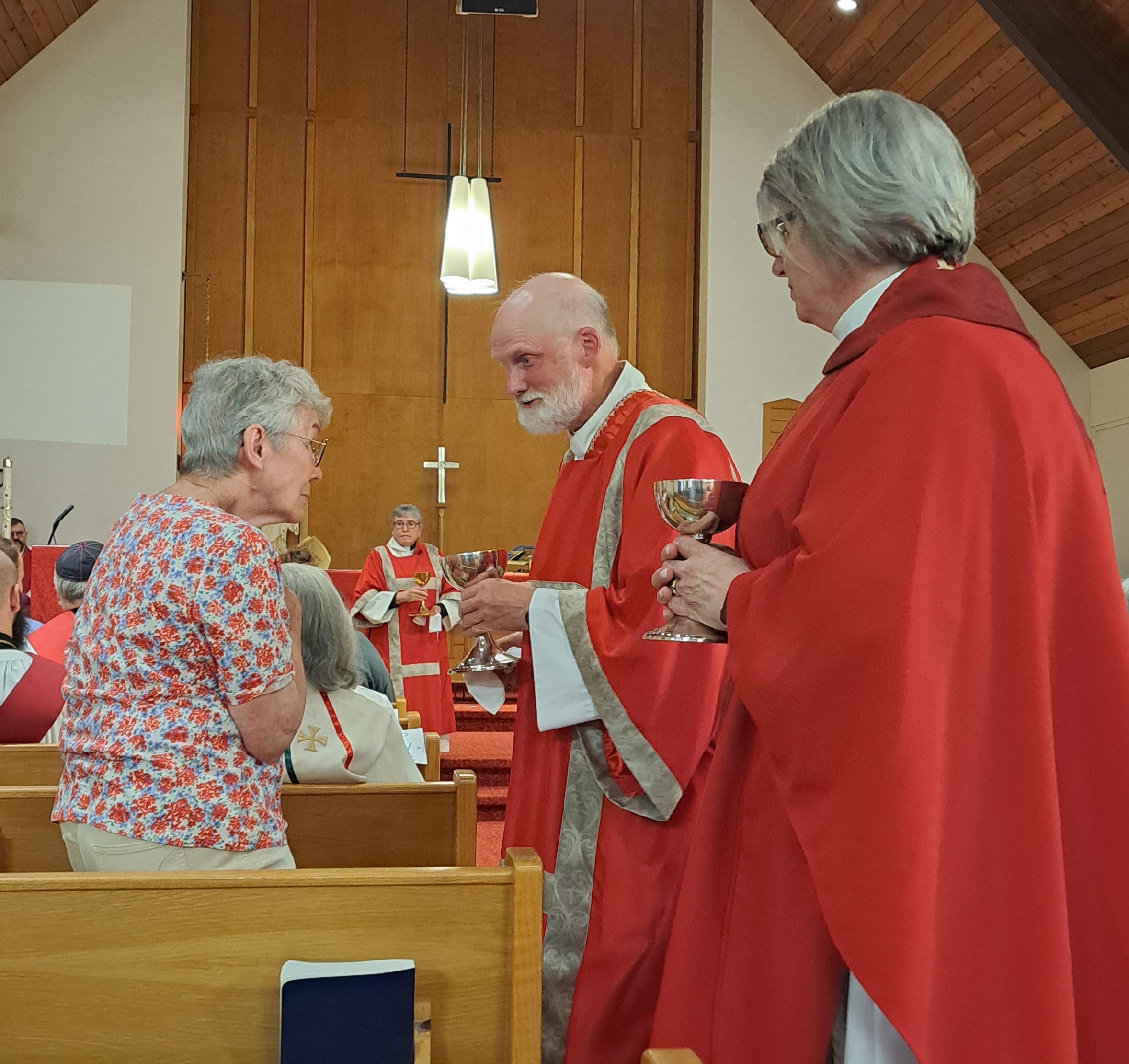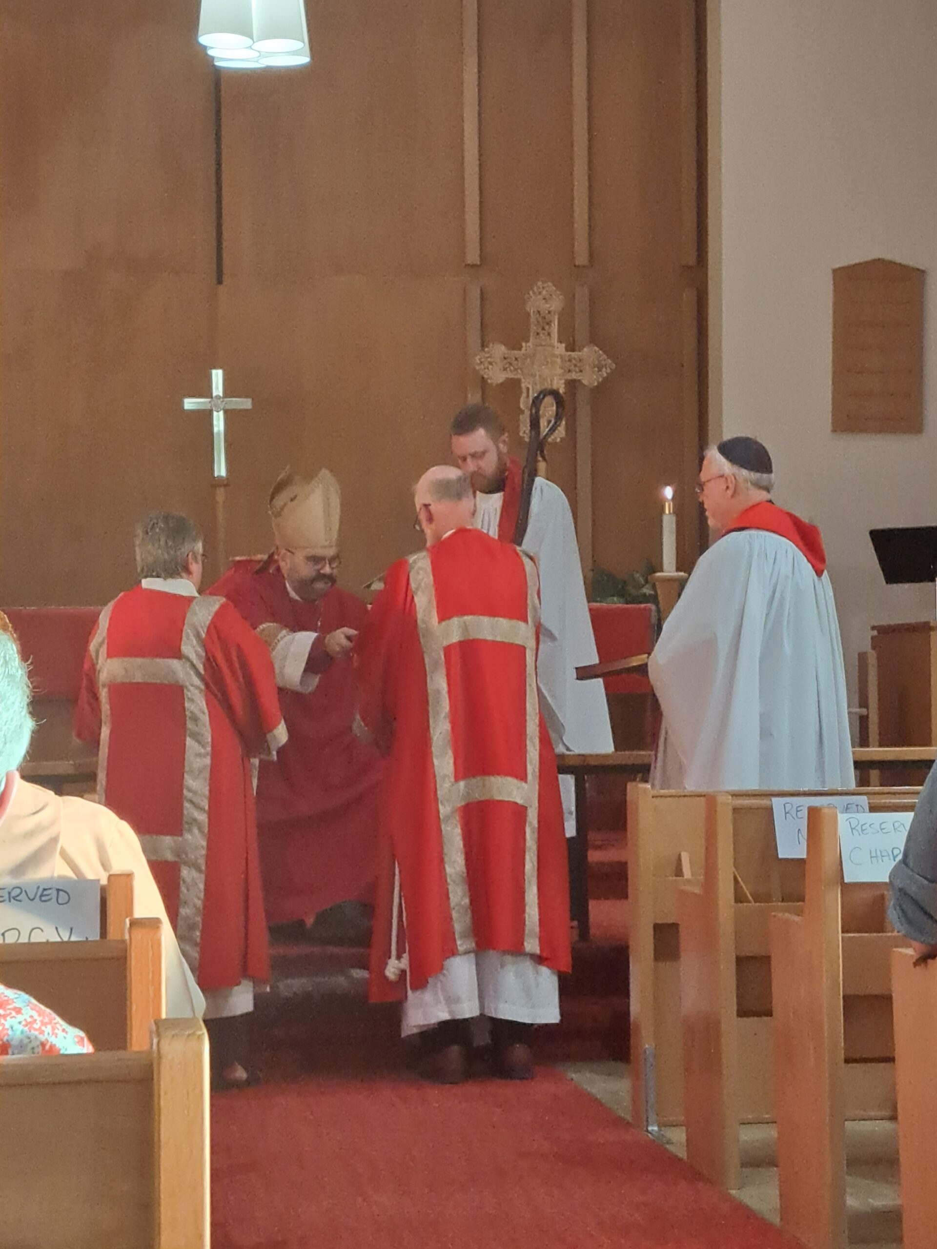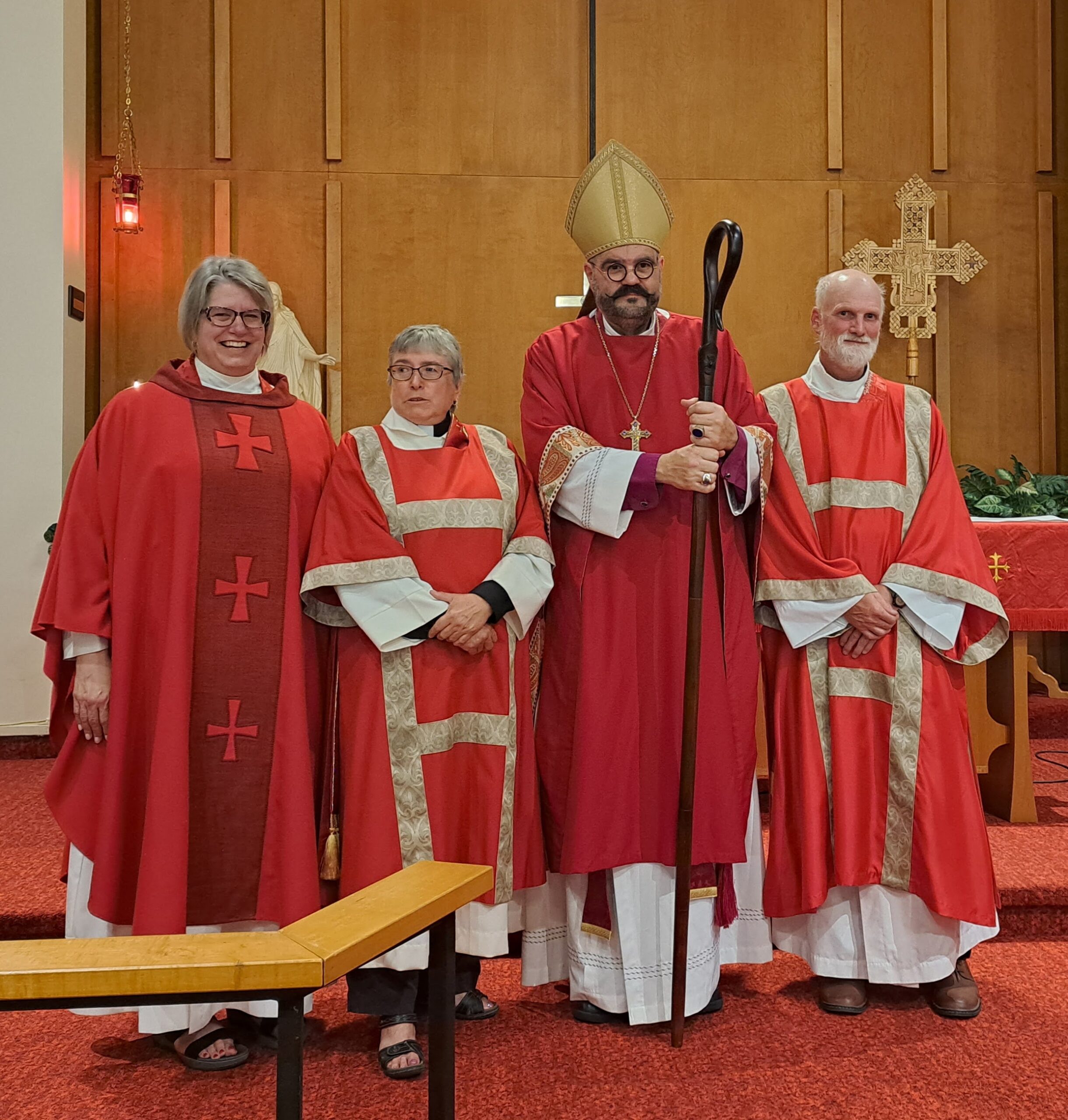 On August 29, we gathered at Redeemer Lutheran church to ordain two deacons and one new priest in Christ’s Holy Catholic Church. A hearty congratulations go out to the Reverend Debra Chapman, now Deacon Assistant at St. Paul’s, Wawanesa, to the Reverend Tim Moore, now Deacon Assistant at St. Paul’s, MacGregor, and the Reverend Cheryl Kukurudz, who continues her work as assistant to the Bishop and Dean, but takes on the role of Honorary Assistant at St. George’s, Brandon.