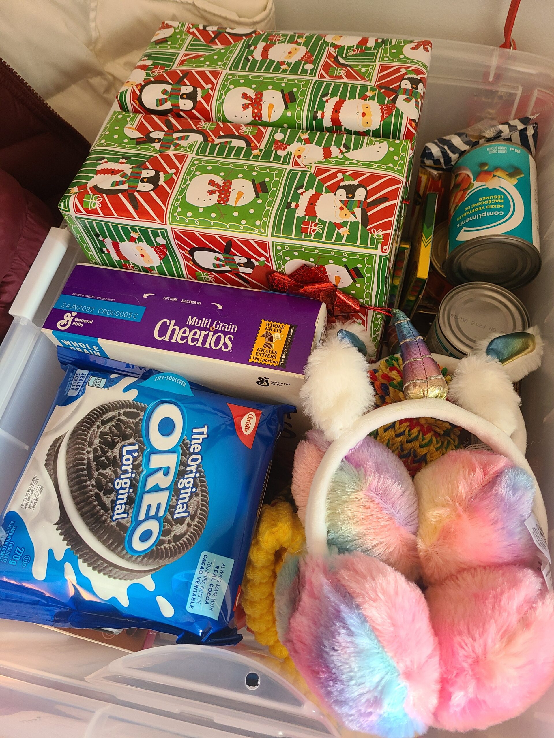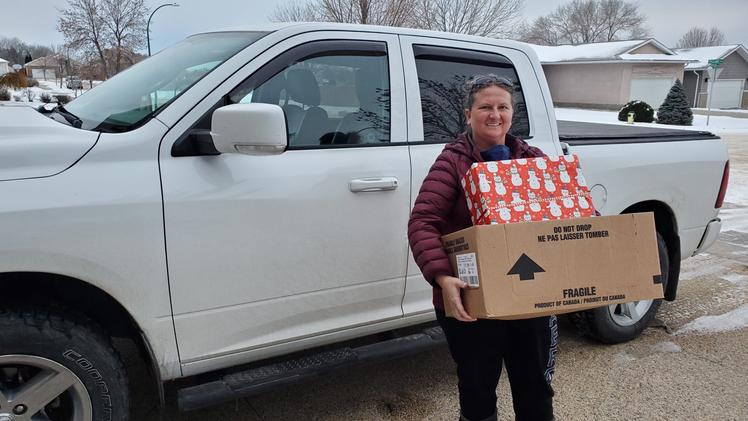 In the photo on the left, Marlie Slack is delivering hampers to the Christmas Cheer program in Brandon on behalf of St. George’s, Brandon and St. Luke’s, Souris.